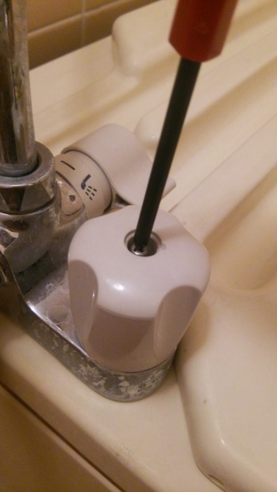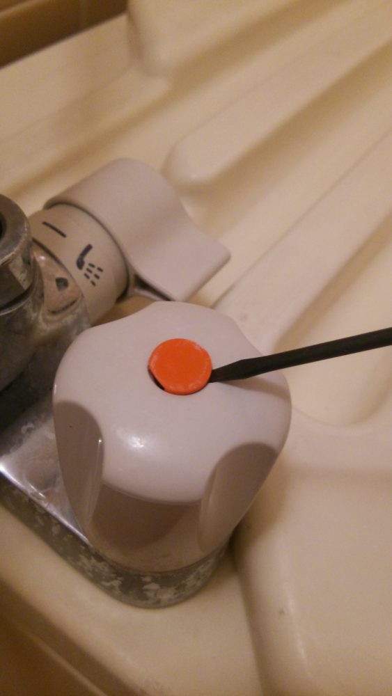 まず最初にハンドルキャップを外すハンドルにハンドルキャップを外すための切り欠きがあるのでそこに小さなマイナスドライバーなどを差し込んで軽くこじればすぐ外れる 。