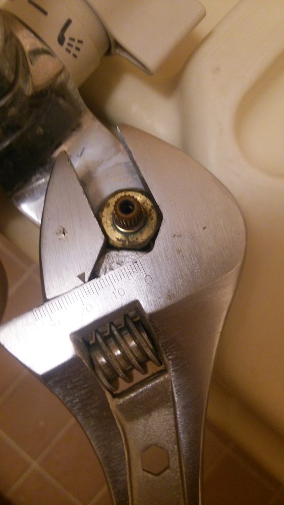 モンキーレンチでナットを押さえ、本体の方をラジオペンチで回します。ナットに錆が回って結構固くなっていたため多少力が要りました。