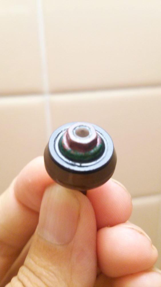 スピンドルが緩んだら手で回して取りました。スピンドル外すと水道コマが見えます。