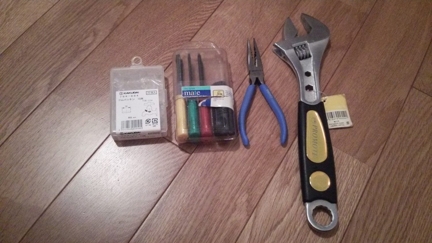 私は水道コマごと交換するのではなく、ゴムパッキンのみを交換するのでゴムパッキンだけを用意した、コマごと交換する場合はコマを用意する。