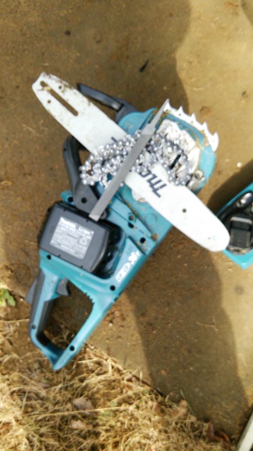 チェンソーはガソリン式が主流だが、特に山奥で作業をするわけでは無いのでランニングコストを考えてバッテリー式を選ぶこととし、バッテリーツールならやはりマキタだろと安易に考えて、バッテリー二個タイプの36vのものを購入したがこれが大失敗だった。