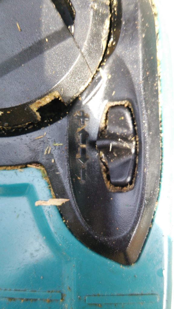 何が失敗かというとチェーンの張りや、ブレードの固定に道具が要らず、ダイヤルを回すだけで出来るのだが、非常に小さいダイヤルなので、飛び散ったチェンソーオイルがダイヤルについて、力をこめて張れないのだ。